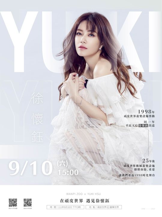 頑皮世界野生動物園(Wanpi World Safari Zoo) 9/10(六) 下午三點,童樂世界-大金剛巨浪前方,邀請到同是出道25年的 徐懷鈺Yuki 重返1998時光舞台