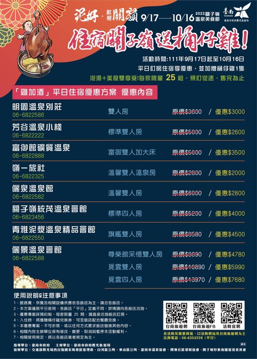 平日入住8家關子嶺指定飯店,即可享住宿優惠