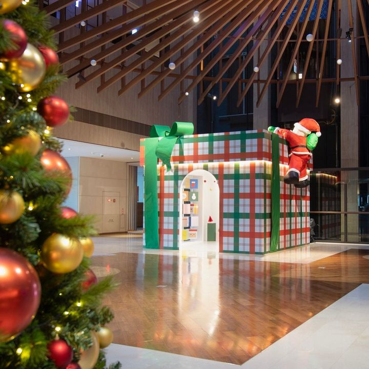 台南大員皇冠假日酒店在大廳打造充滿童趣氣氛的聖誕布置,有5公尺高的聖誕樹、大型聖誕老公公攀爬在5米正方的巨型禮物屋上,讓大人小孩都相當驚喜,紛紛拍照留念。 圖片文字介接自Facebook或Instagram,版權屬原作者所有