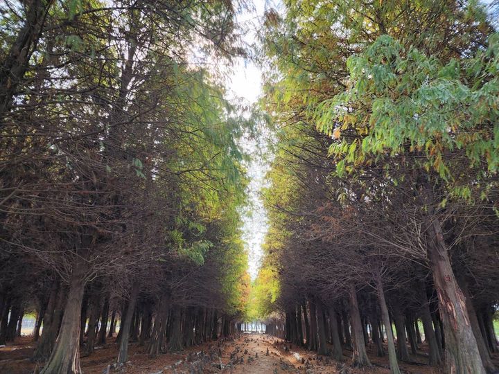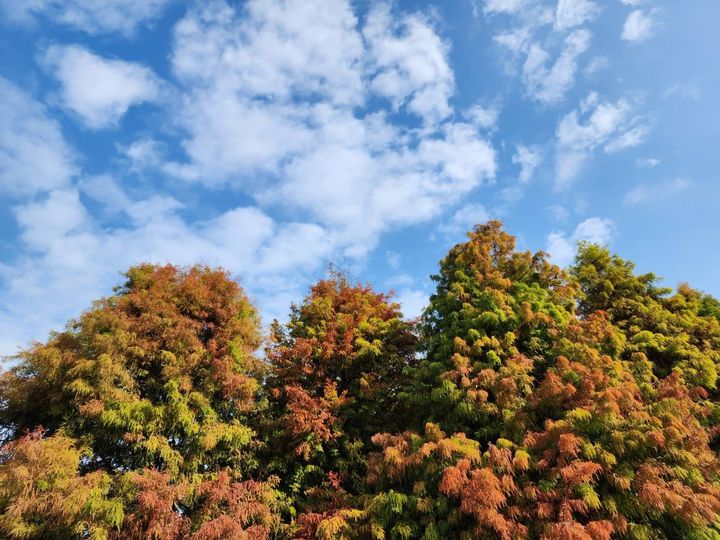 落羽松已呈現紅綠黃繽紛多彩多姿😍
