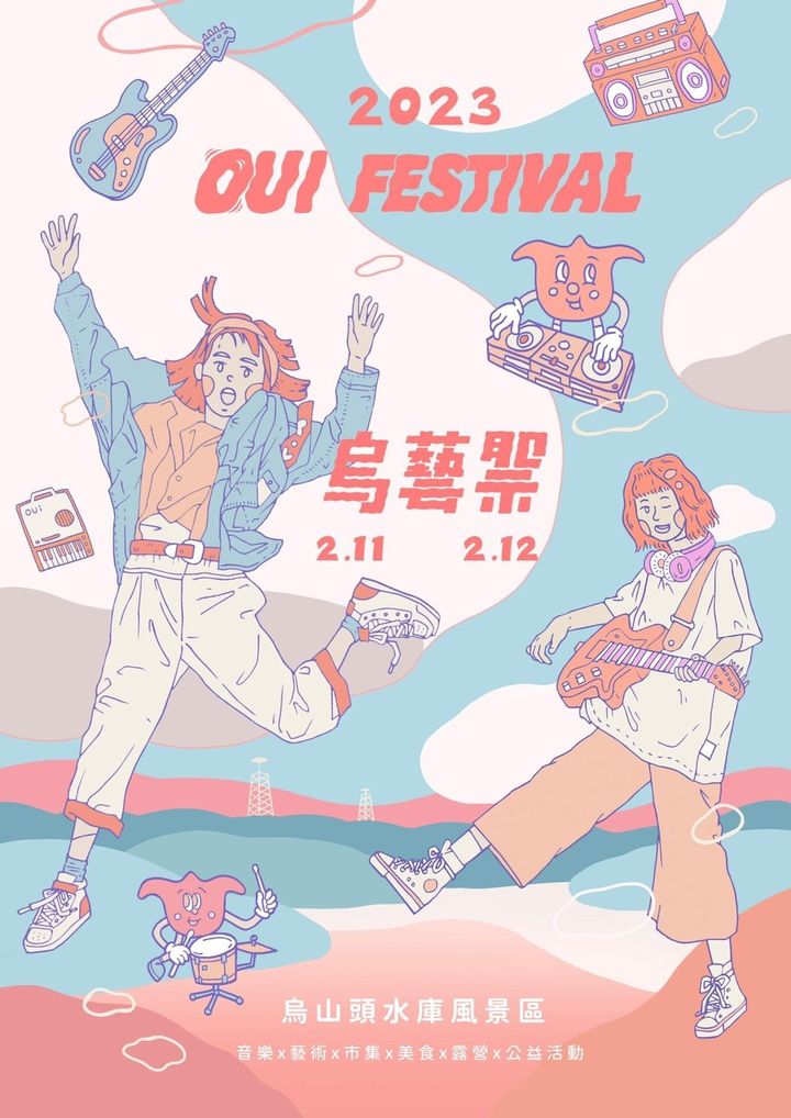 由 #臺南藝術大學文化資產研創中心 所主辦的 #露營音樂祭「 烏藝祭Oui Festival」將在2/11、2/12於 #烏山頭水庫風景區 登場🎊