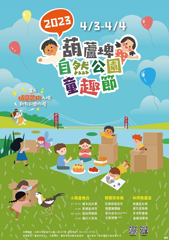 4/3日至4日 #葫蘆埤自然公園 以「自然系生態小精靈」為主軸,舉辦「2023葫蘆埤自然公園童趣節」,安排10大系列親子活動。