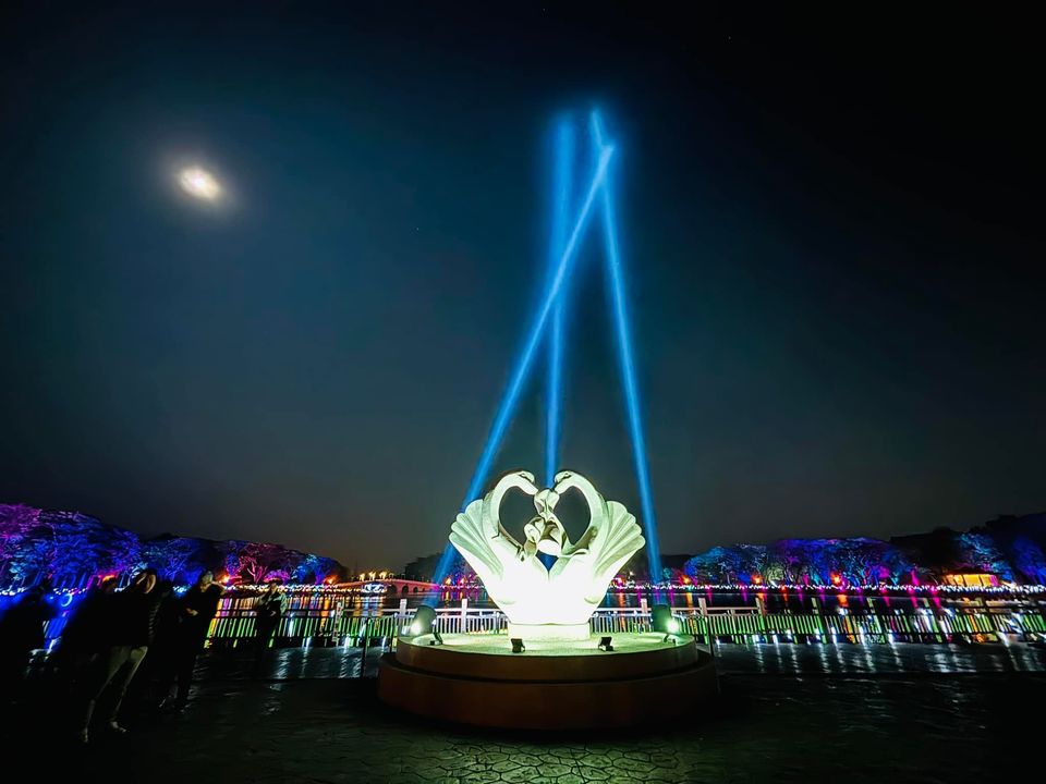 天鵝湖展區共計9件主題亮點作品、環湖光環境以及大型水上噴泉。