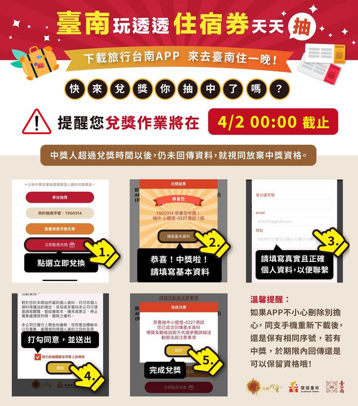 目前還有得獎者沒有至APP內回傳聯絡資訊,回傳期限至4/1,逾時視同放棄,請參與者盡速至APP內確認是否得獎。