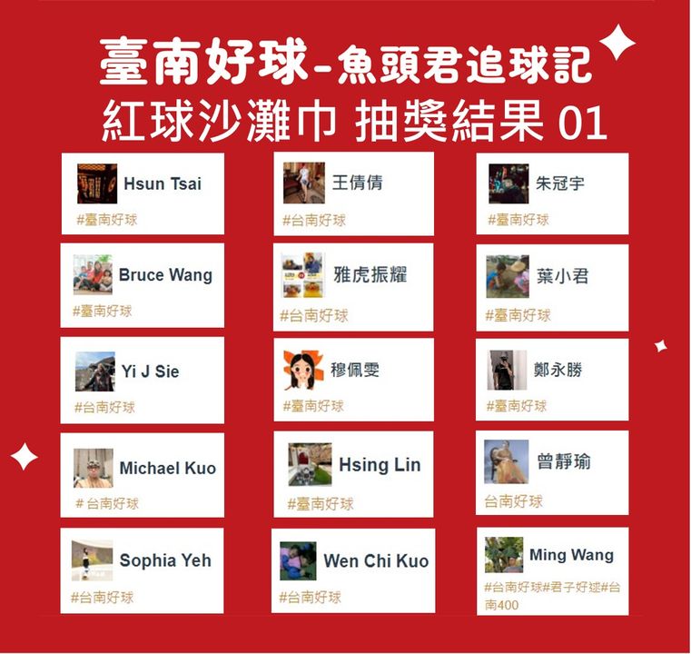 臺南好球─魚頭君追球記抽獎活動開獎啦 ~~ 📣