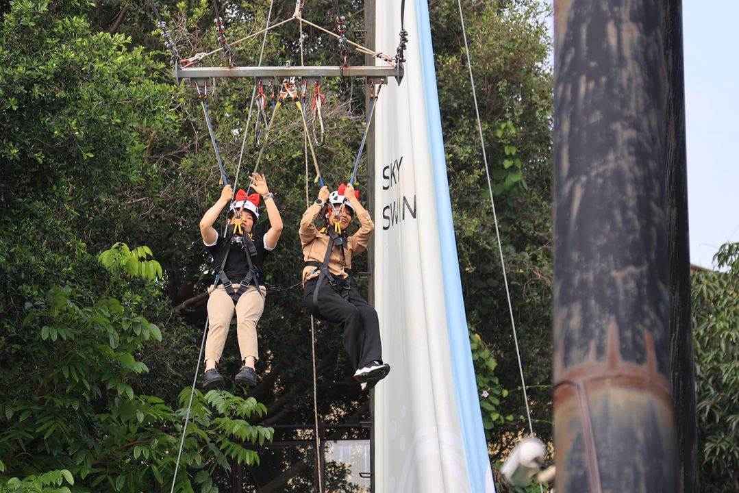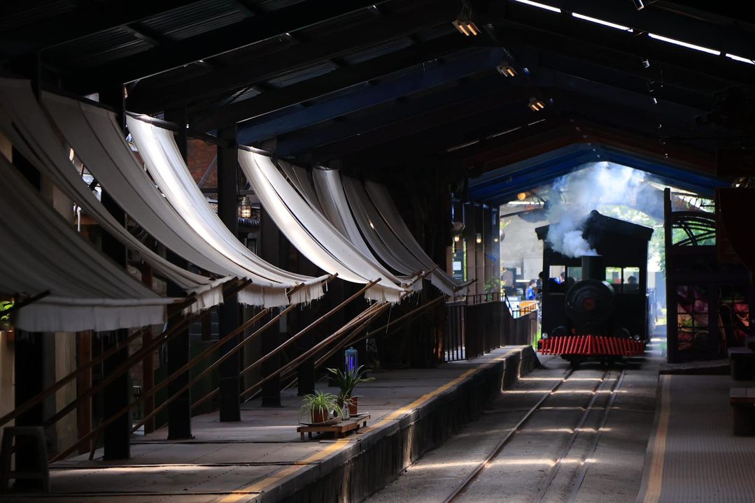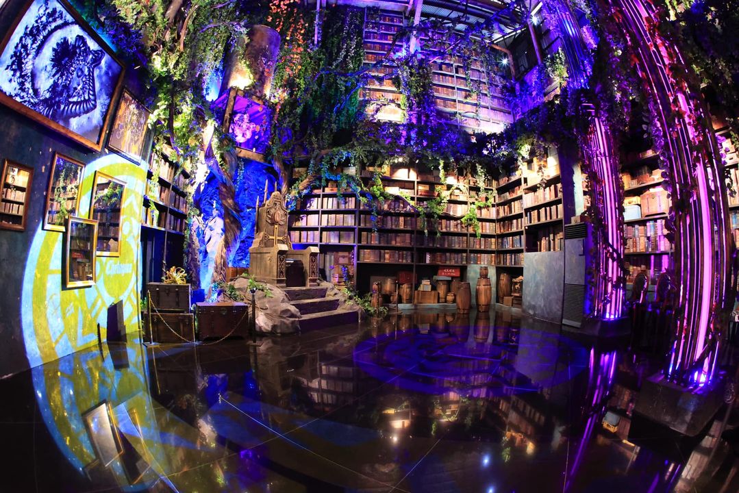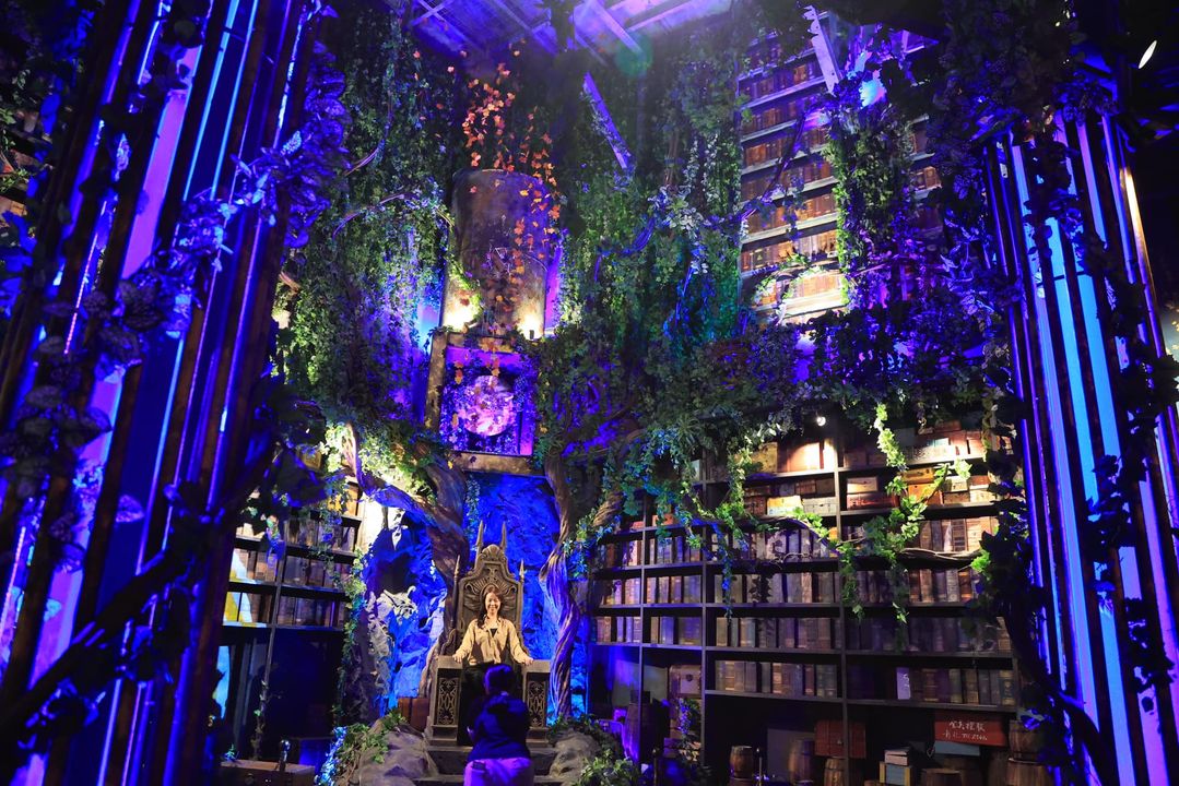 十鼓文創園區還打造最新拍照打卡場景「魔域王座」,結合魔法元素與古老神秘氛圍,挑高15公尺的魔法書牆與書櫃爬滿藤蔓,在正中間擺上王座,讓旅客坐在其中,彷彿成為掌控異世界的王者般。