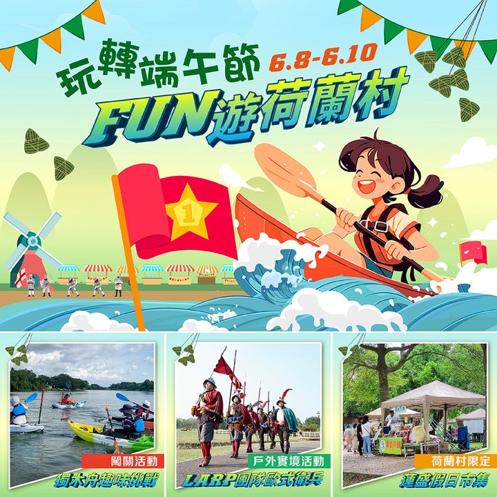 期間以「玩轉端午‧Fun遊荷蘭村」為主題,安排了充滿異國風情的古歐洲軍團實境體驗活動、搭配應景的獨木舟趣味闖關挑戰、琳瑯滿目的假日市集與精采的街頭藝人表演。