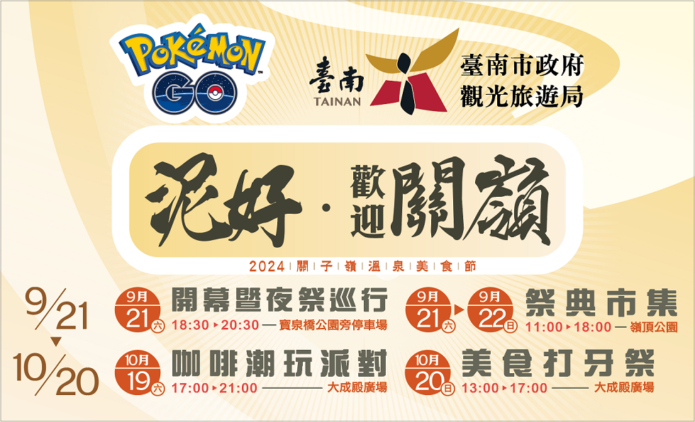2024關子嶺溫泉美食節與《Pokémon GO》合作,活動期間於16家合作店家消費滿額送禮物卡