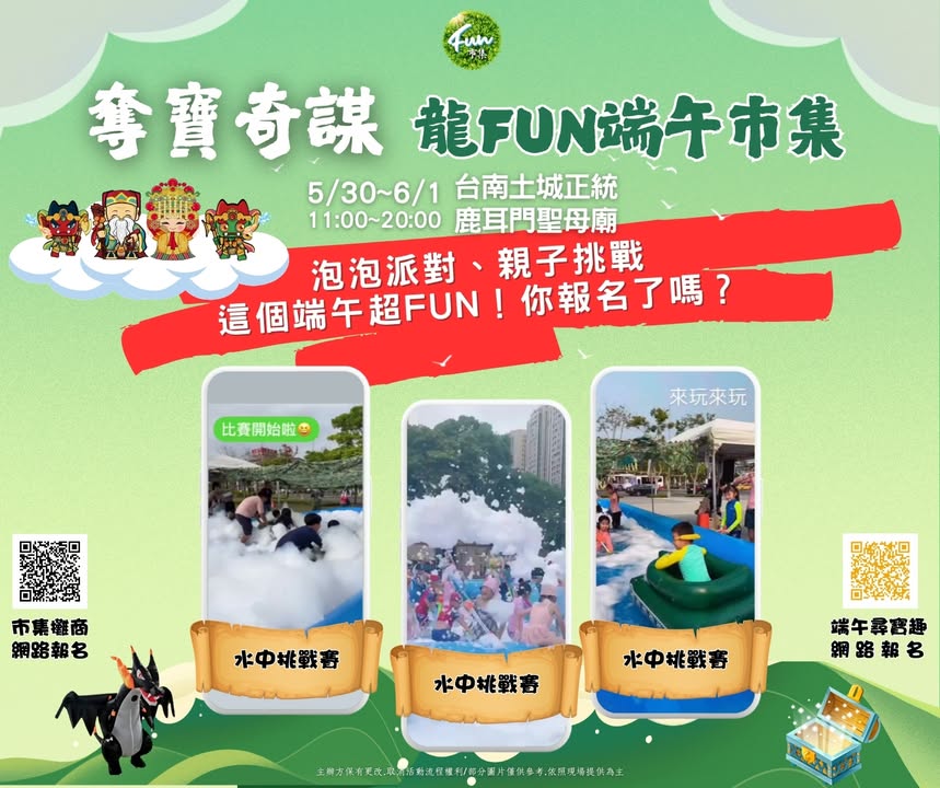 🐉 誰說端午只能吃粽子?來 #正統鹿耳門聖母廟 參加【奪寶奇謀:龍Fun端午】一起水上開戰,挑戰最瘋端午關卡!