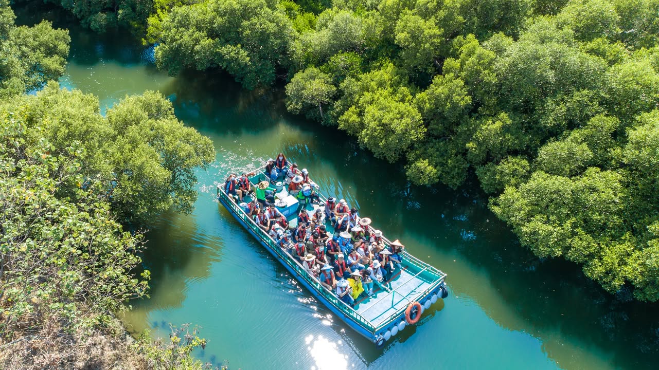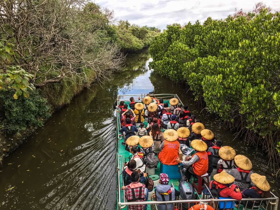 四草綠色隧道位在台江國家公園內,為早期運送鹽、糖等民生物資的人工渠道。全長800公尺河道沿岸擁有豐富的紅樹林生態景觀,許多招潮蟹、彈塗魚、大白鷺等生物都在這裡繁衍生息,極富歷史與生態知識。隧道內沿途茂密紅樹林交織,樹幹與水中倒影而成的綠色之眼,是傳說中的仙境般美景,因此被稱為「台版亞馬遜河」,上岸後還能順道參觀抹香鯨陳列館,讓人更貼近海洋生物的奧祕與保育觀念。