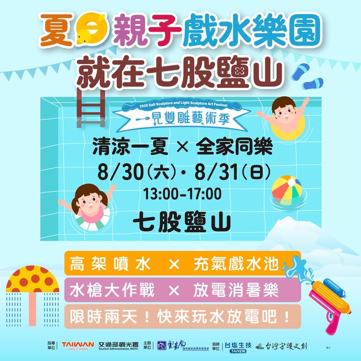 想要清涼一夏?快帶著全家一起來七股鹽山,體驗最有趣、最放電的【夏日親子戲水樂園】!這裡不只好玩,還能讓小朋友盡情消耗體力,大人小孩一起歡笑濕身!💦