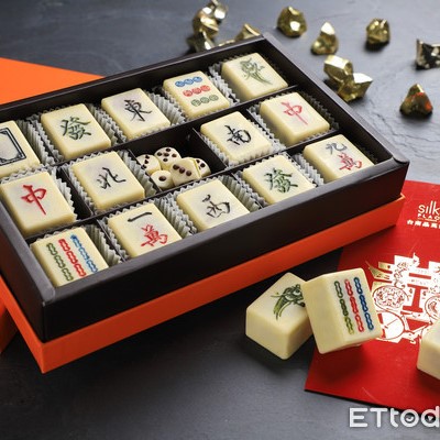 Silks Place Tainan 台南晶英酒店 推出一系列新春禮盒及開運甜點,將傳統文化融入精緻的西式甜品裡,麻將巧克力禮盒選用檸檬焦糖甘納許為基底,並搭配苦甜巧克力內餡,層次鮮明相當清爽。