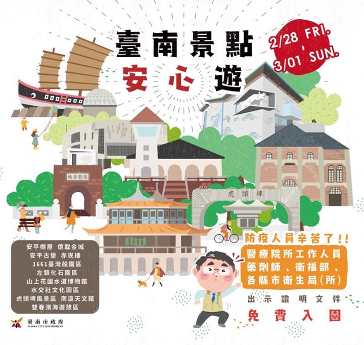 #向一線防疫人員致敬👍228連假臺南11處景點 #免費暢遊