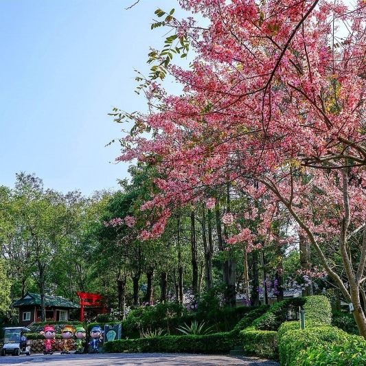 台糖尖山埤江南渡假村 Jianshanpi Jiangnan Resort穿桃紅入園半價優惠。