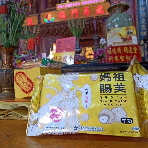配合媽祖誕辰,台南推出 #台南限定 的媽祖系列商品「#媽祖賜芙」牛奶泡芙點心,4/15起可以在台南市古蹟景點買得到, 台南土城正統鹿耳門聖母廟 也可購得!