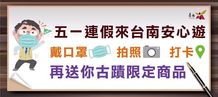 麥鬧啊啦!出遊就是要帶著口罩再拍照打卡才潮,#五一連假 做好防疫措施 安心遊臺南,再送您古蹟限定商品!
