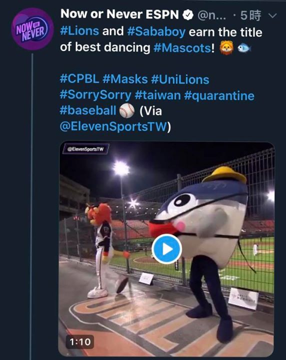在⚾️台南主場追著 統一獅萊恩 又跑又跳舞