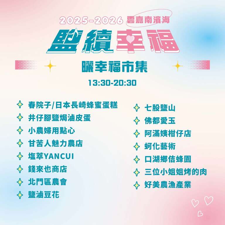 更多活动资讯请参阅 云嘉南,好好玩!!!(云嘉南滨海风景区) 脸书粉丝专页