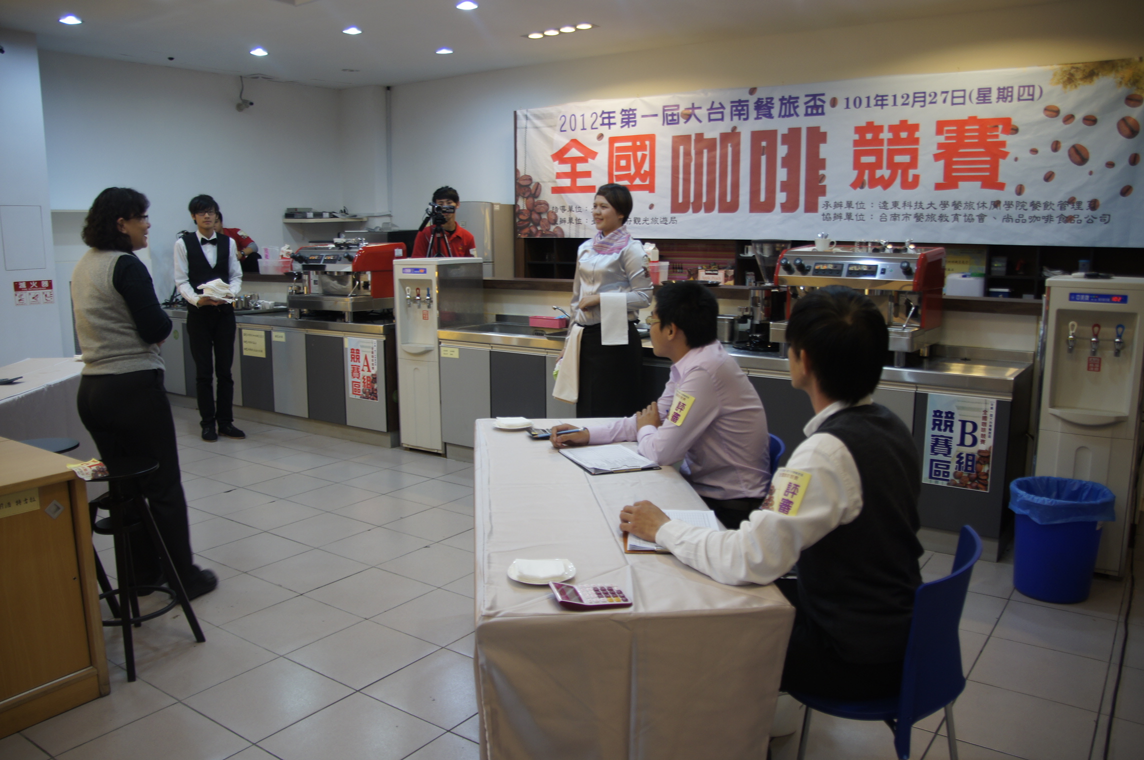 2012年第一届大台南餐旅盃全国咖啡竞赛於12月27日(四),在远东科技大学餐饮管理系调饮教室举行。参赛名次已於晚间8点出炉,大专组由远东科技大学李荣耀同学抡元,高中职组冠军则由嘉义市兴华中学余学甫获得。报名参加本次竞赛的学生相当踊跃,从北部至屏东的学生均热情参与,高中职组有15间学校计53位学生报名,大专院校组则有8间学校计21位学生报名,参赛者共计74名。 主办单位台南市政府观光旅游局表示:近年来营造城市生活风貌为推广观光行销之一环,咖啡调饮亦蔚为风潮,办理此次竞赛是希望提供热爱咖啡制作的餐饮相关科系学生能有相互观摩学习机会,及专业技能之养成的竞赛平台,藉由竞赛活动能培植本市咖啡调饮的新兴好手,为业界发掘更多对咖啡有热情的新生代,也藉由此次竞赛与学校及产业界共同合作推广行销本市的美食观光文化。 本竞赛重点在於要在12分钟完成准备试萃咖啡与试打奶泡,且制作2杯相同成品的卡布奇诺(Cappuccino)咖啡2杯,还要服务茶水与介绍成品,参赛学生不仅需有专业技能并且要能展现出自信与对咖啡的热情。竞赛采高规格标准评审,特别邀请曾担任台湾咖啡师大赛主审的冯静安副教授、国际COE咖啡大赛冠军选手教练李美娟、亲手烘培本次比赛特调咖啡豆的尚品咖啡张硕峯经理、多次担任全国技术士技能检定评审的高雄餐旅大学刘秀慧主任以及美国SCAA咖啡品质监定评审陈泓旗老师参与评判。 评审们表示:本次竞赛除要注意制作过程的卫生及善後清洁外,成品的奶泡组织需呈现绵密光滑、厚度要达1公分以上,完整包围咖啡杯边缘呈现饱满和谐的组合,选手也要能清晰表达作品的风味口感,运用正确的服务礼仪展现自信及对咖啡的热情。透过这次比赛大家可以互相观摩学习,也希望同学们能保持热诚勇於接受挑战,多多磨练,让技艺更为提升。 承办单位远东科技大学表示:此次竞赛使用之特调城市风味豆采高比例Arabica混调,香气浓郁口感饱和,味蕾跳动性佳,Espresso萃取油脂丰厚,浓稠度极佳,与牛奶调配亦有令人惊喜的感觉,参赛者打出的奶泡呈现绵密、光滑的口感,让咖啡与牛奶和谐组合,愈发引人啜饮的向往。本次竞赛活动除强化青年学子咖啡调制的技能与文化素养外,并希望促进观光发展、产学合作之交流,增加城市新生活品味。 【本案新闻联络人:台南市政府观光旅游局 府城观光科许小姐06-2991111分机7832】