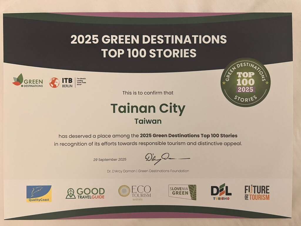 从法国奥克西塔尼(Occitanie)举行的2025全球绿色目的地年会(Global Green Destinations Gay Conference)传来好消息,在法国当地时间9月29日晚间颁布的「2025全球百大目的地故事奖」(2025 Green Destinations Top 100 Stories),台南市政府观光旅游局以「时光留痕,古城新生」获选,黄伟哲市长表示,台南是台湾唯二获得此殊荣的城市,展现台南在永续道路的动能,获得国际绿色旅游市场的注目!