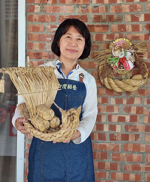 张淑娥融合台日文化,以每年生肖、在地物产发想,不断创新,设计出各种文创商品和猫屋、按摩棒等实用产品,并举办讲座介绍注连绳的丰富文化底蕴。去年起她也指导台南第二监狱稻艺班,利用六甲稻草结合2023年台湾灯会优等奖作品花灯骨架,制作三尊高达2公尺的稻艺「官将首」,寓意「重获新生」,期许受刑人成为社会可造之才。作品在今年全国矫正署艺文及技训联展中大放异彩,堪称全场最吸睛。她强调,稻米是神送给人类最好的礼物,因此稻草也不该任意丢弃,稻香味传递着人与土地的情感,用稻草创作别具意义。