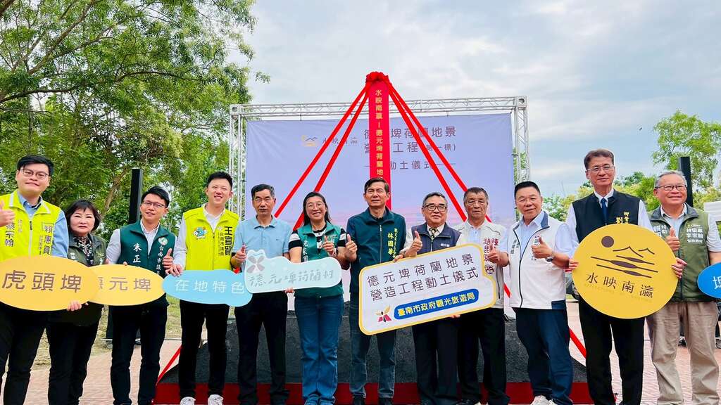 台南市政府积极推动埤塘观光发展,争取交通部观光署「重要廊带亮点营造计画-水映南瀛」,以总经费4.6亿元,串联德元埤、葫芦埤及虎头埤三大轴带,打造具在地特色之水域观光廊带。其中重点工程之一「德元埤荷兰地景营造工程」於今(23)日举行动土仪式,象徵计画更往前迈进一步。