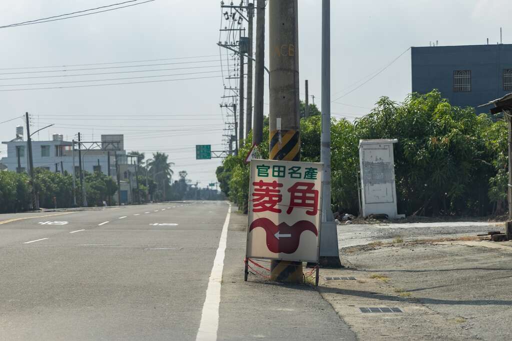 秋日官田的公路风景-菱角摊,受惠於埤塘与乌山头水库的灌溉系统,官田菱角的种植面积广达400余公顷,年产量超过4500吨,居全台首位。菱角田上不时可见到叶行者-台南市市鸟水雉,轻功水上飘於菱角叶之上。