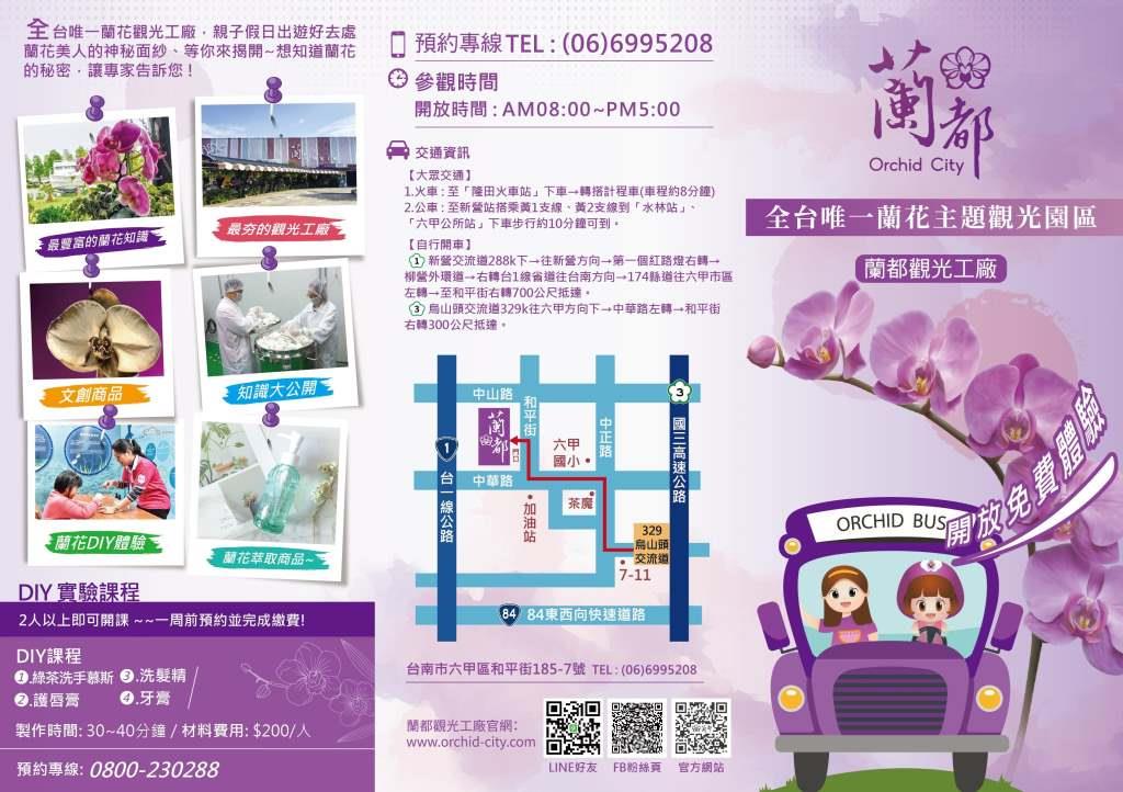 4.4本廠座落於台南六甲,為了發揚台南蘭花產業的驕傲,建立了這座結合休閒、寓教於樂的「蘭都觀光工廠」,用來體驗、探索、展售「蘭花」相關的文化知識與商品。