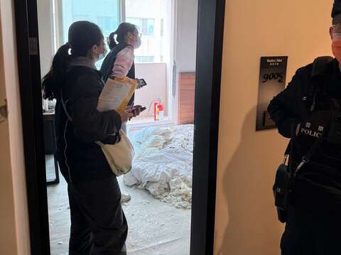 • 勘查旅館內災後狀況