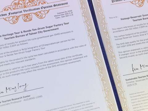 臺南邁向永續旅遊新里程碑 一景區三遊程取得國際黃金標準(GS)碳註銷證明