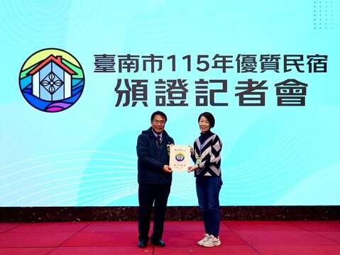 臺南市政府觀光旅遊局為持續深耕在地旅宿品質,與顧客在體驗上建立深度連結,辦理「2025臺南優質民宿認證」,透過團隊的輔導以及謹慎、細膩的評測,共計達80家民宿業者通過優質民宿認證,今(22)日假福爾摩沙遊艇酒店一樓鳳凰廳隆重舉行「2025臺南市優質民宿頒證記者會」,表彰其在提升服務品質與發展自我品牌特色上的卓越貢獻。