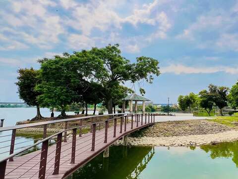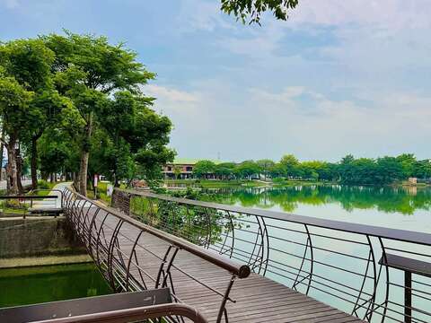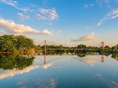 黃偉哲市長表示,臺南擁有豐富埤塘資源,不僅見證地方聚落發展,也與農業生產及居民生活息息相關,是重要的休憩與文化資產。葫蘆埤自然公園位於官田區176市道旁,是本市重要的觀光景點,更名列新南瀛八景「菱香舟影」,園區以擁有埤塘美景著稱,引人入勝的凌波吊橋及兒童遊憩區深受民眾喜愛。本次工程除優化整體環境外,並新增地景遊憩區、水岸座階,全面更新環埤步道,給遊客更安全、友善、舒適、多元的休憩環境。